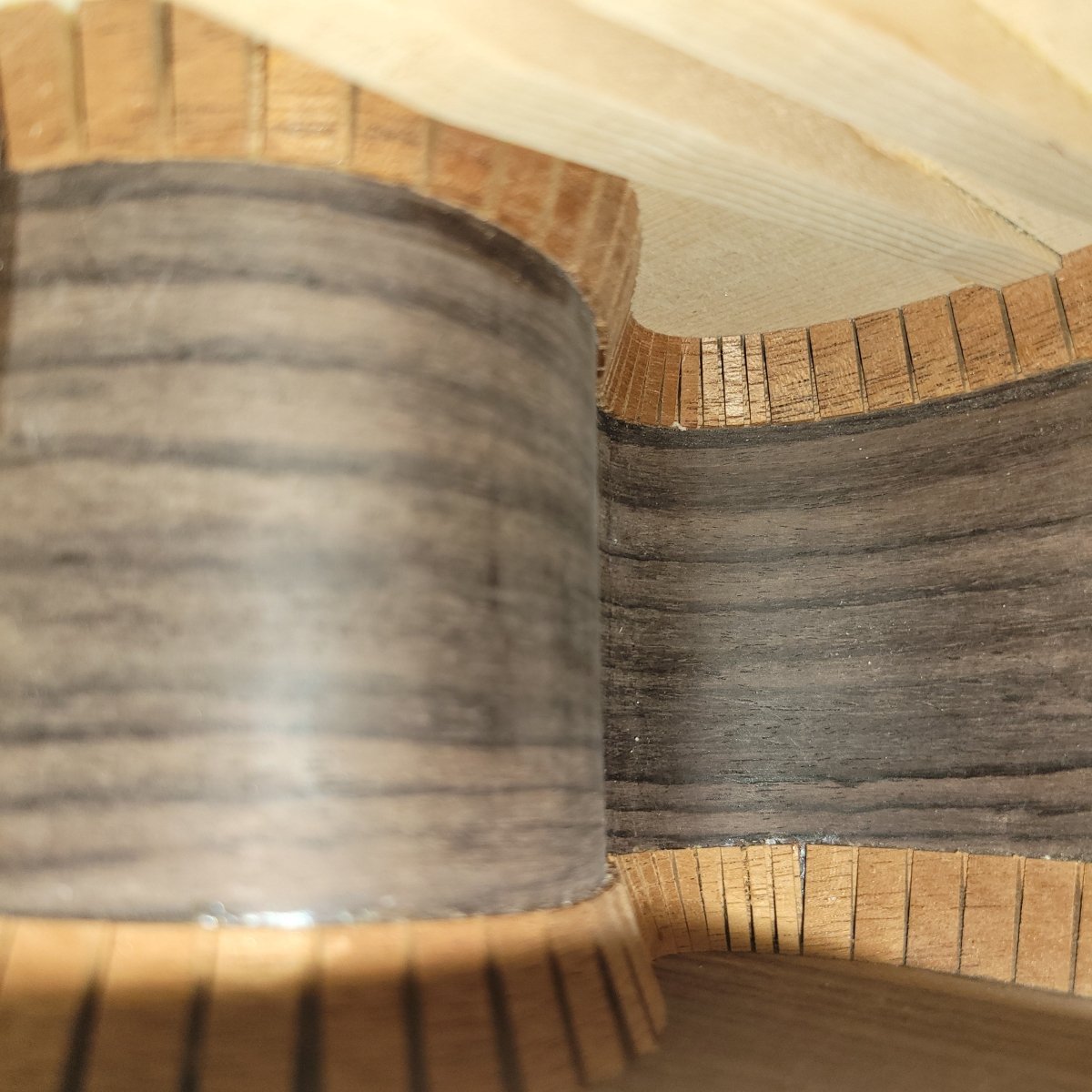The guitar is in excellent condition with just a bit of fret wear and a light finish imperfection at the neck heel to keep it from being Mint.  This guitar stomps everything Taylor with huge tone.