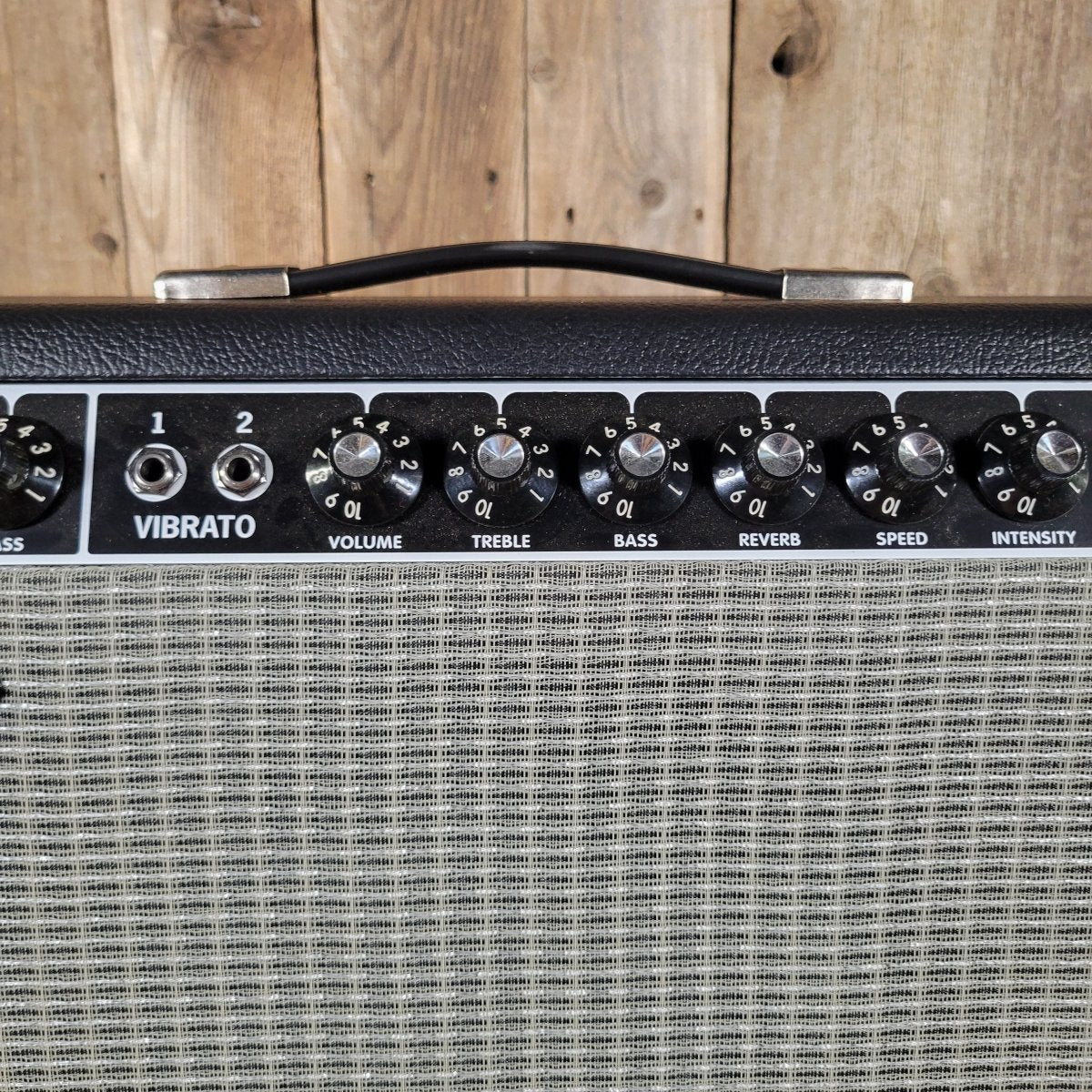This 2021 reissue model delivers the same shimmering cleans and smooth breakup that defined countless classic recordings, making it equally at home in blues, country, rock, and jazz. Outfitted with a single 12-inch Jensen C12K speaker, it projects with clarity and depth, while the onboard tube-driven reverb and vibrato add unmistakable Fender character.