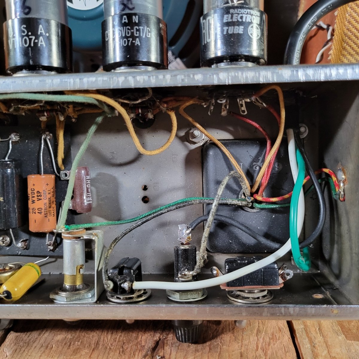 I went through the amp and updated electrolytic caps, checked other components, and changed out the power cable. The pots and tube sockets were cleaned, tubes tested, and I ran it up on my scope to make sure it is running well. And it does run strong and quiet.