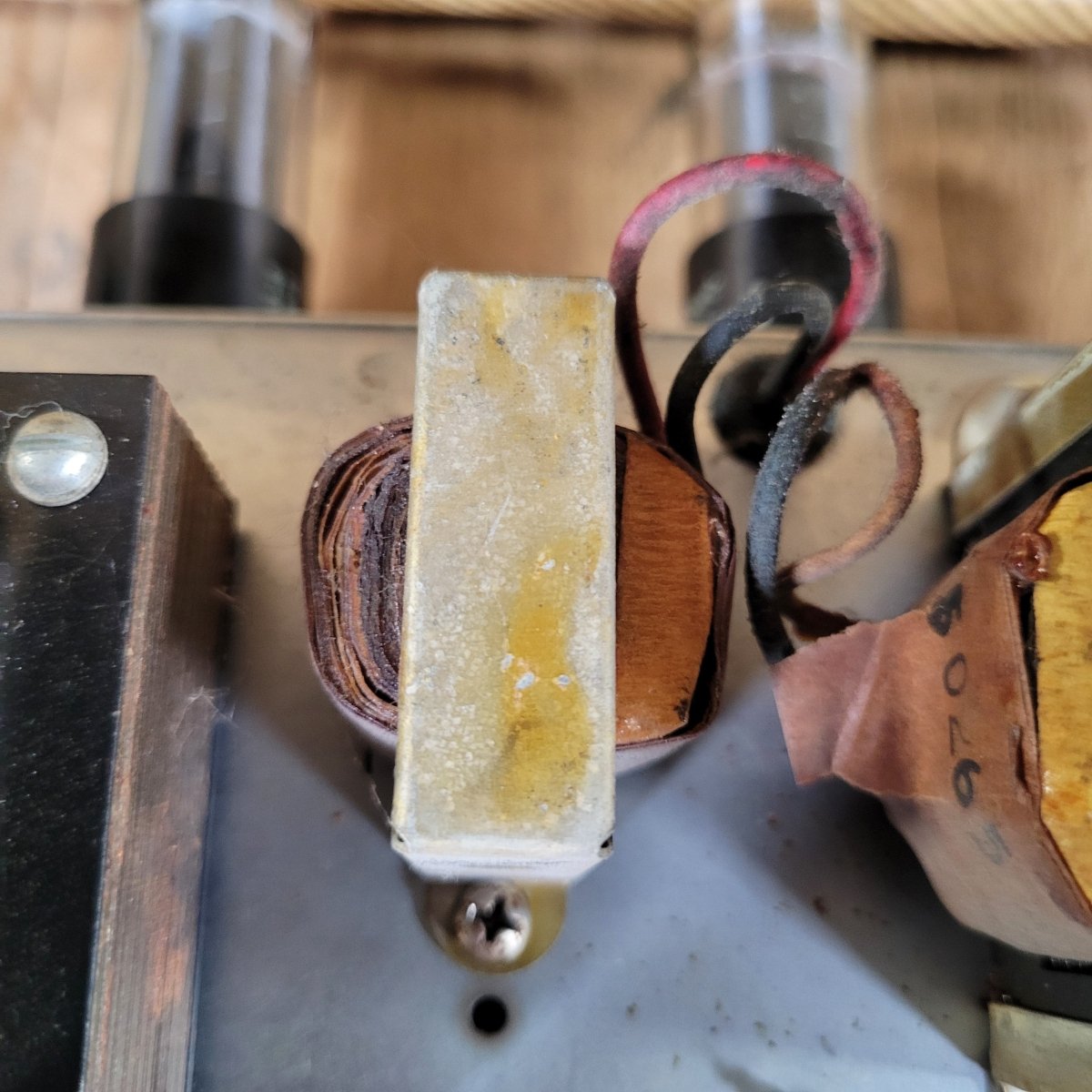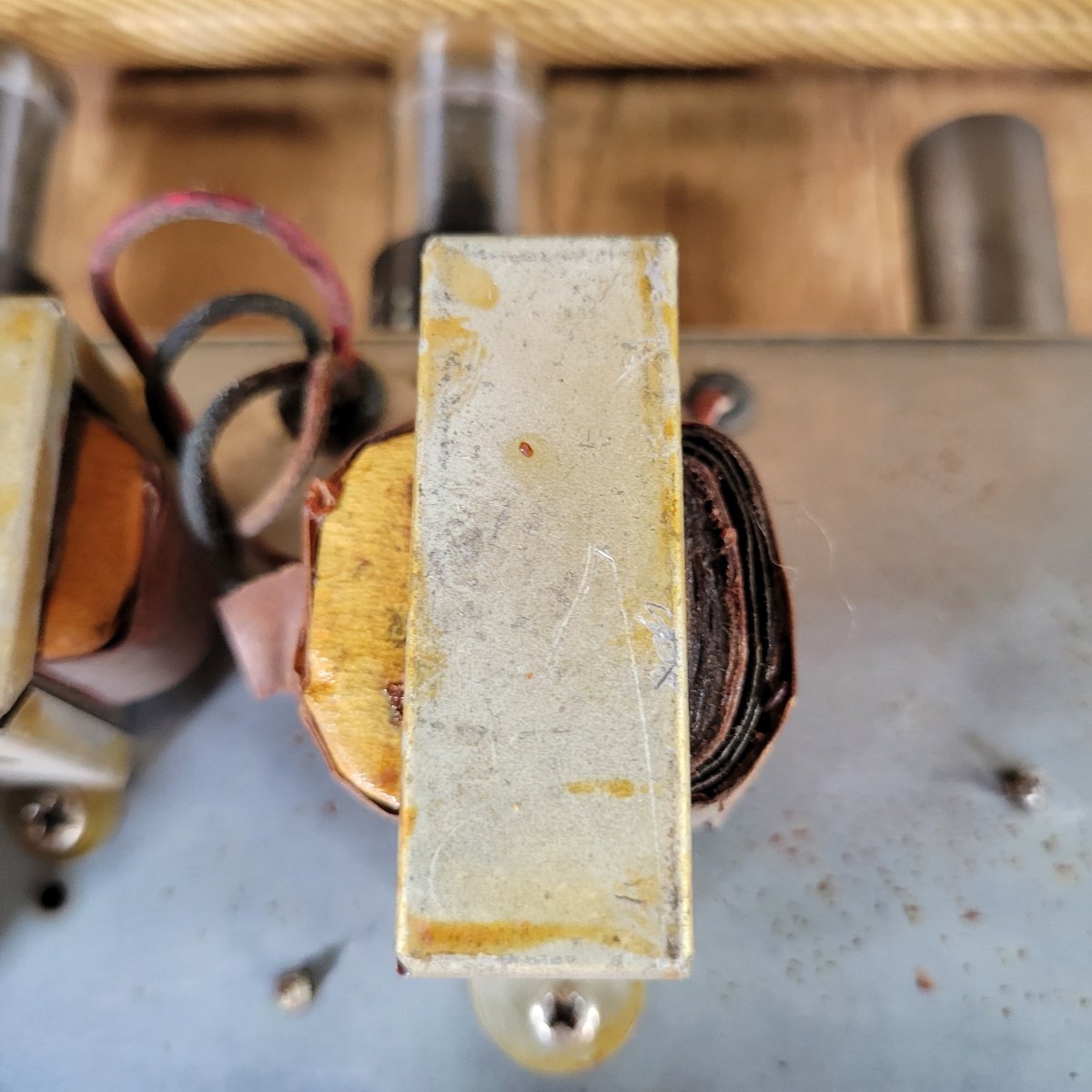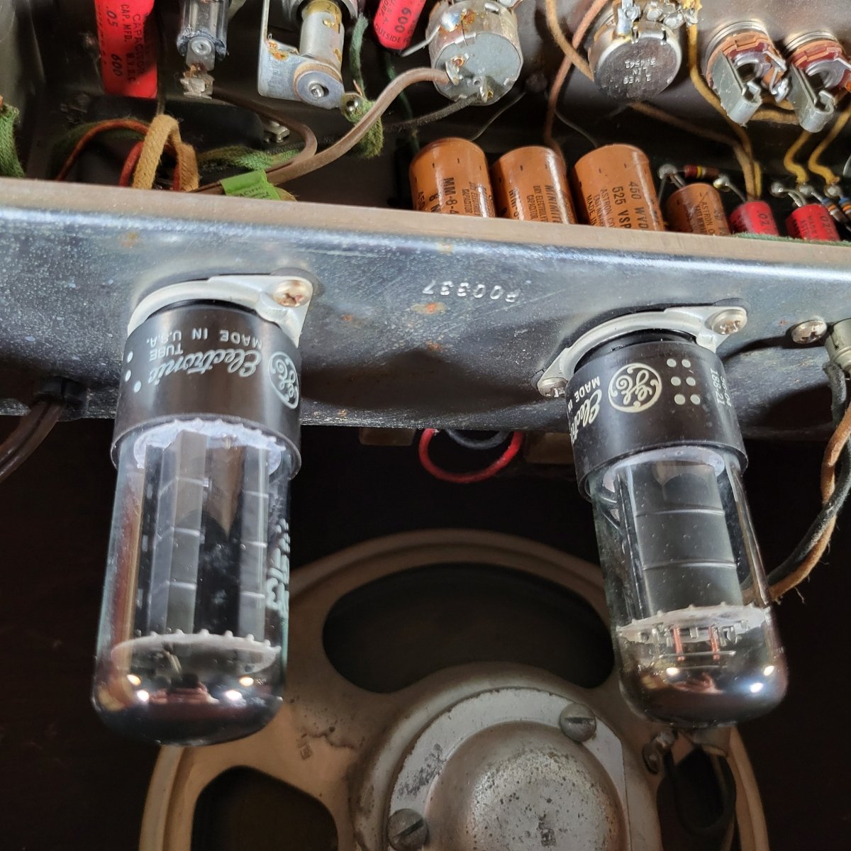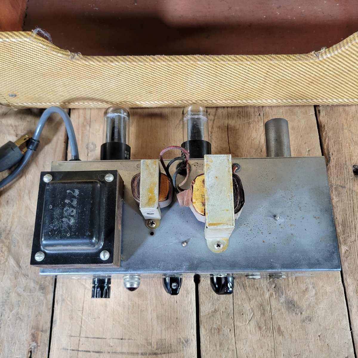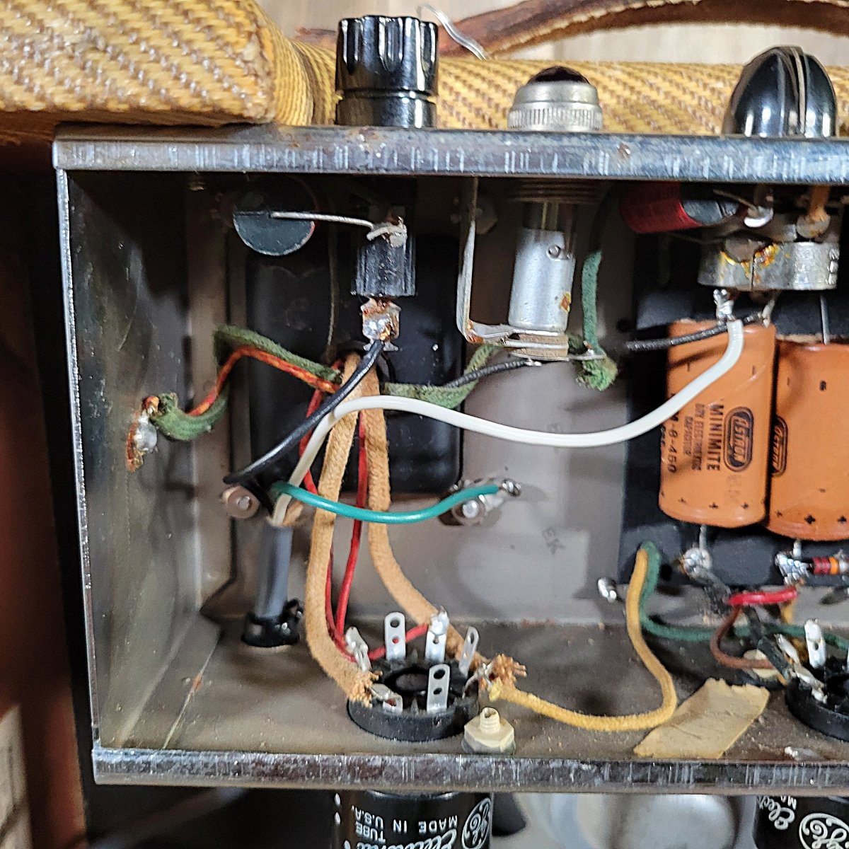 The amp came to us as a 100% original example.  It was apparent immediately that a cap job was necessary, so I did the work here in the shop.  The original electrolytic caps were retained and I installed the new caps inside their original sleeves.