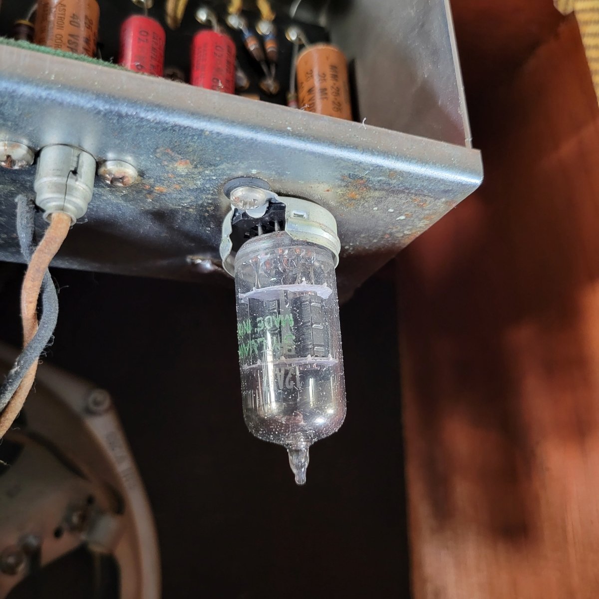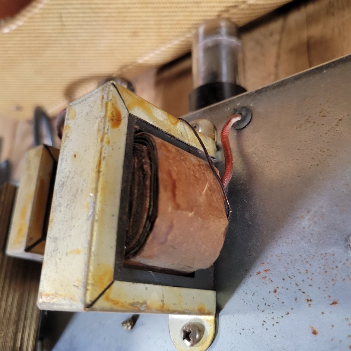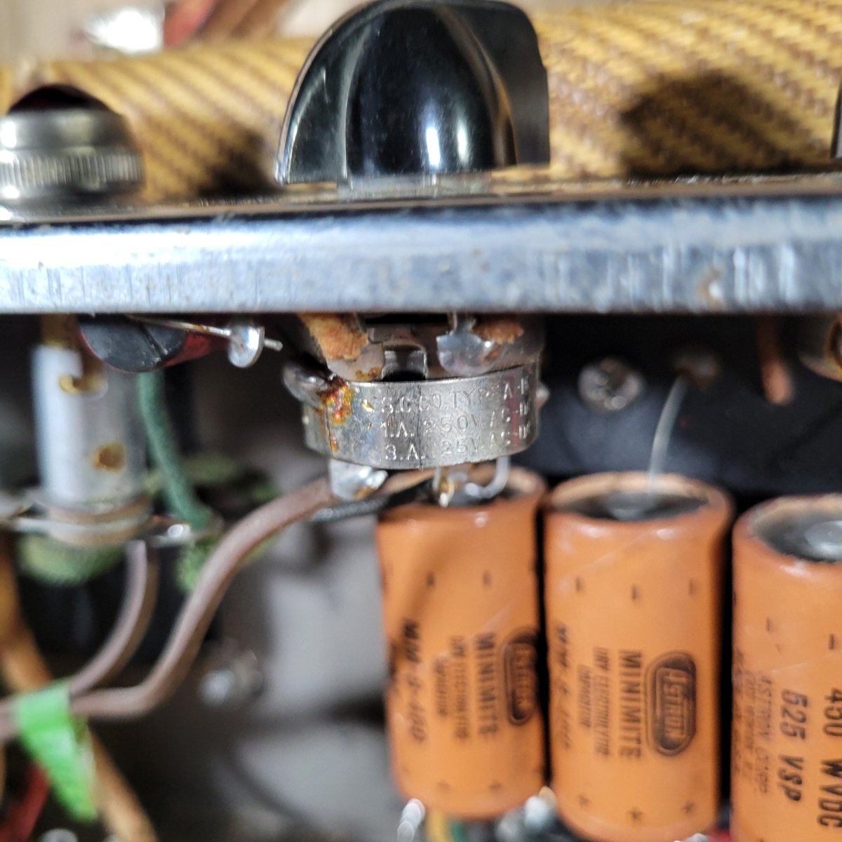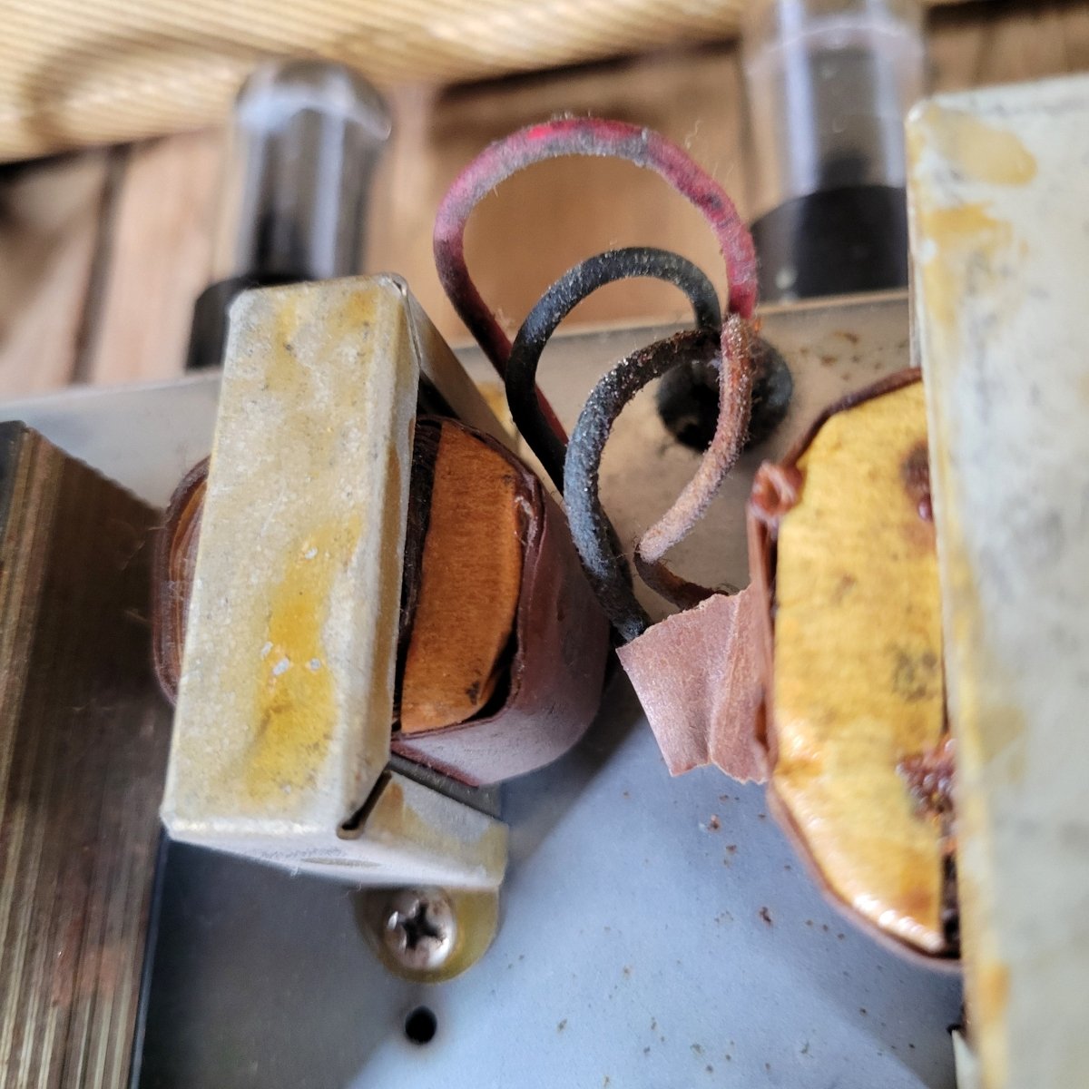 The amp came to us as a 100% original example.  It was apparent immediately that a cap job was necessary, so I did the work here in the shop.  The original electrolytic caps were retained and I installed the new caps inside their original sleeves.