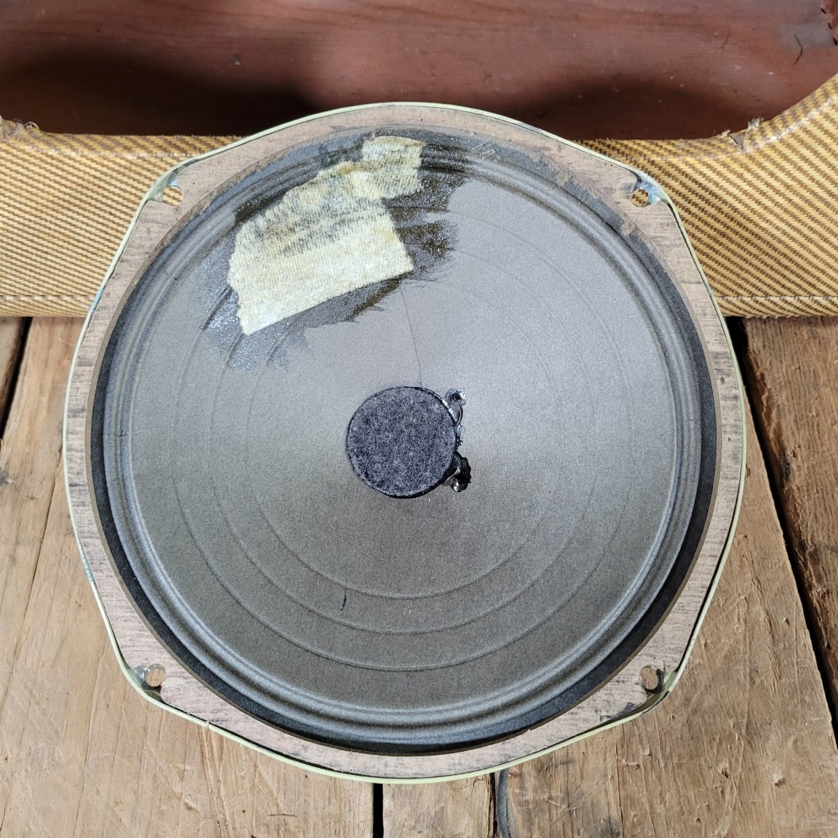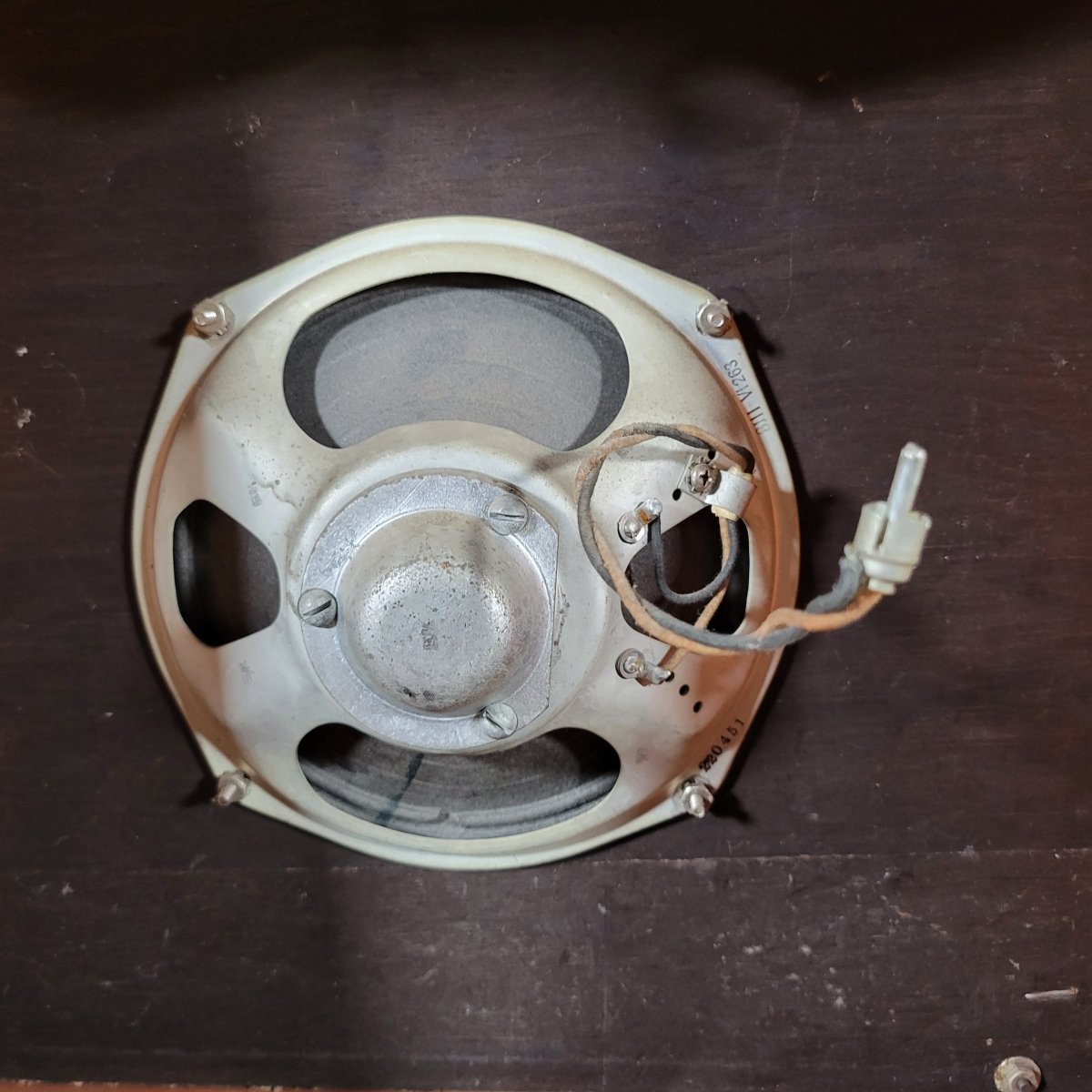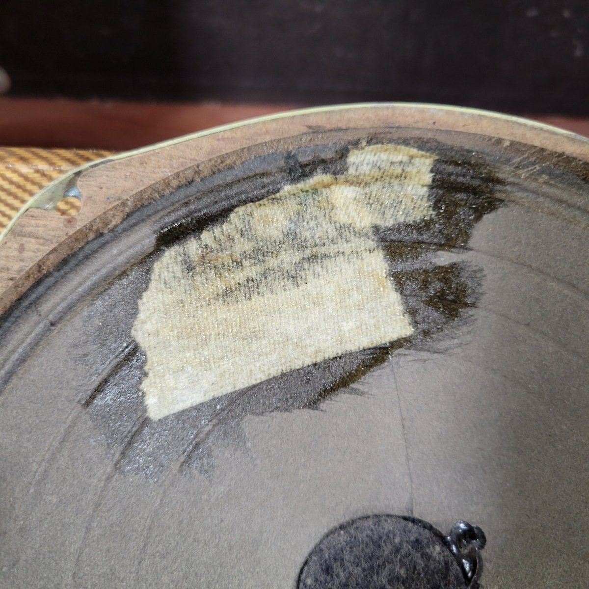 The original speaker had a couple small rips in it, but it still works well so I did a rudimentary patch with rubber cement and some commercial paper towel pieces.  It doesn't look all that great on the cone, but it works.  I am assuming that the next owner will install a modern speaker, so this made the most sense.