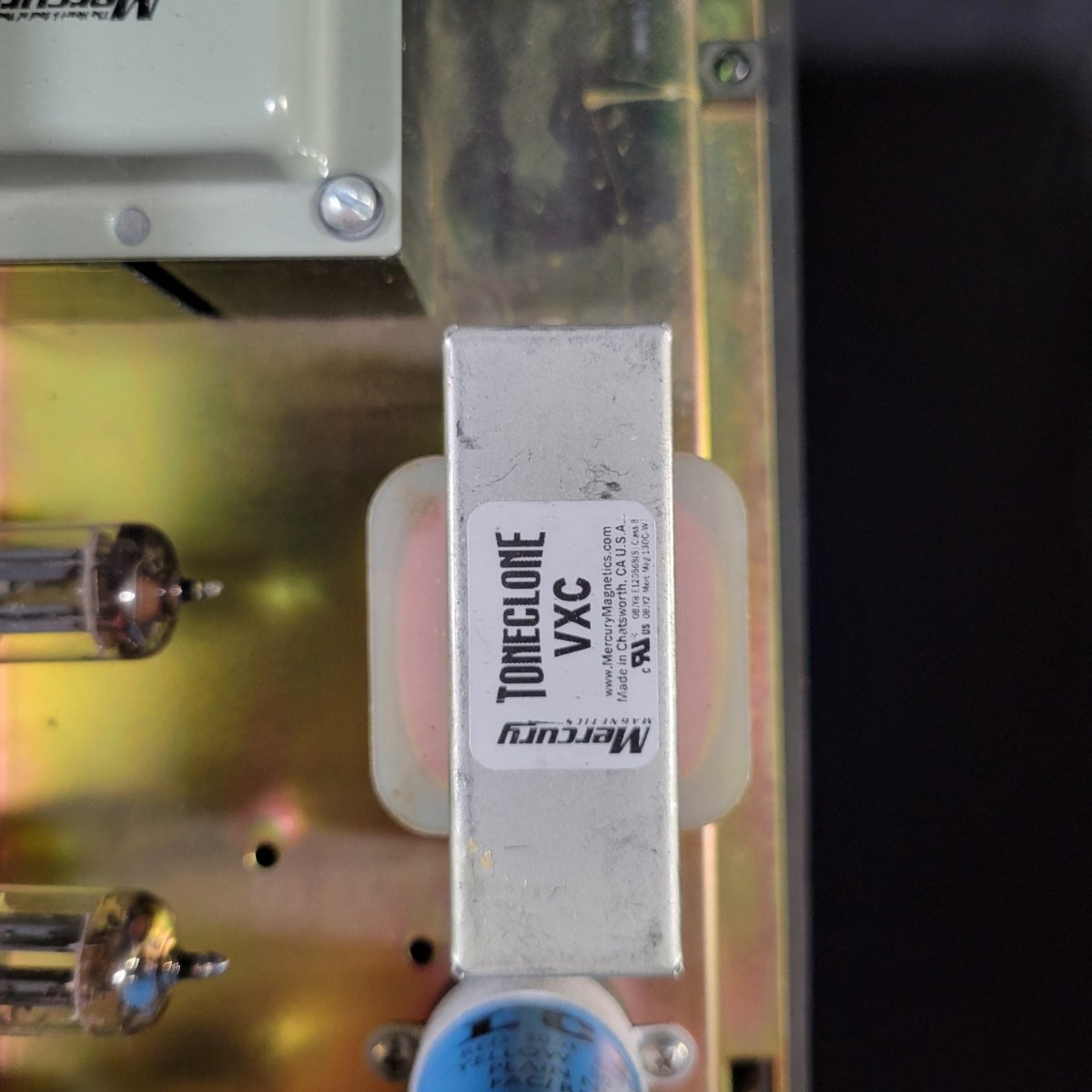 This unbranded hand-wired amplifier is a high-quality reproduction of a vintage JMI-era Vox AC15, built with premium components and outfitted with Mercury Magnetics transformers for authentic tone and reliability. The vVox branded Celestion Blue speaker definitely adds to the package.