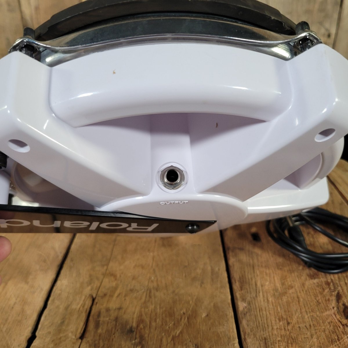 This example includes the original mounting arm and connection cable, making it ready to integrate into any Roland V-Drums setup or compatible Alesis, Yamaha, or Pearl electronic systems with adjustable sensitivity. The white mesh head (WT finish) provides a clean and classic look, and the pad is in excellent working condition with smooth trigger response and no damage to the head, shell, or hardware.