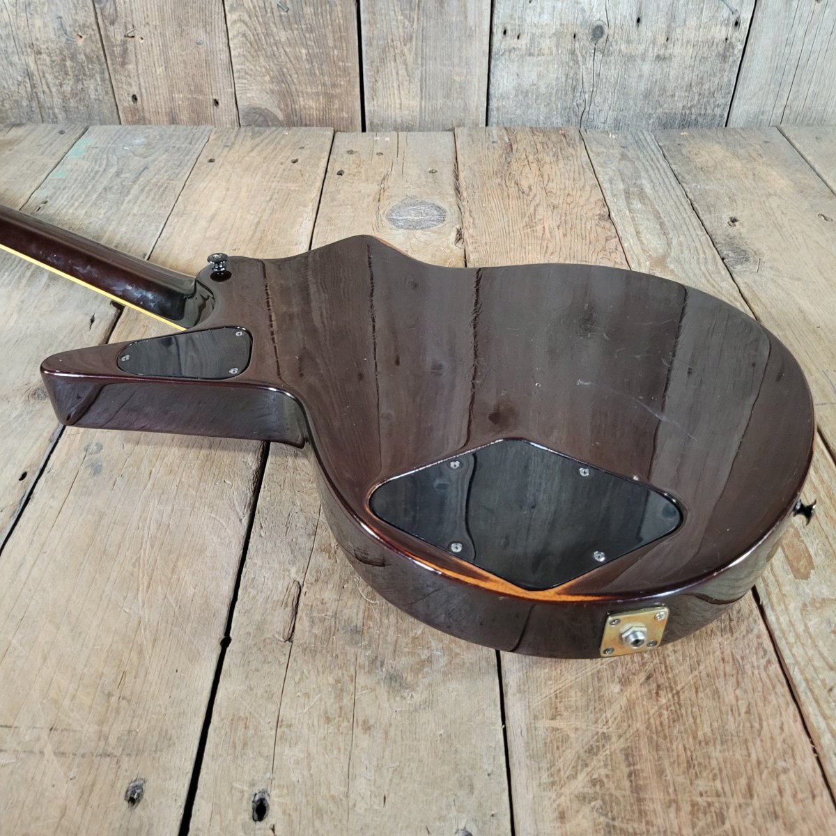 The original DiMarzio pickups provide thick output with beautifully defined mids—ideal for classic rock, metal, and saturated lead tones. The comfortable medium-C neck profile and ebony board offer fast, smooth playability, while the sustain and resonance from the mahogany body rival anything Gibson was producing at the time. The guitar is light and resonant, and that translates to the tone when it is plugged in. The cool tailpiece seems to be a contributor, the way it is bonded to the top of the guitar.