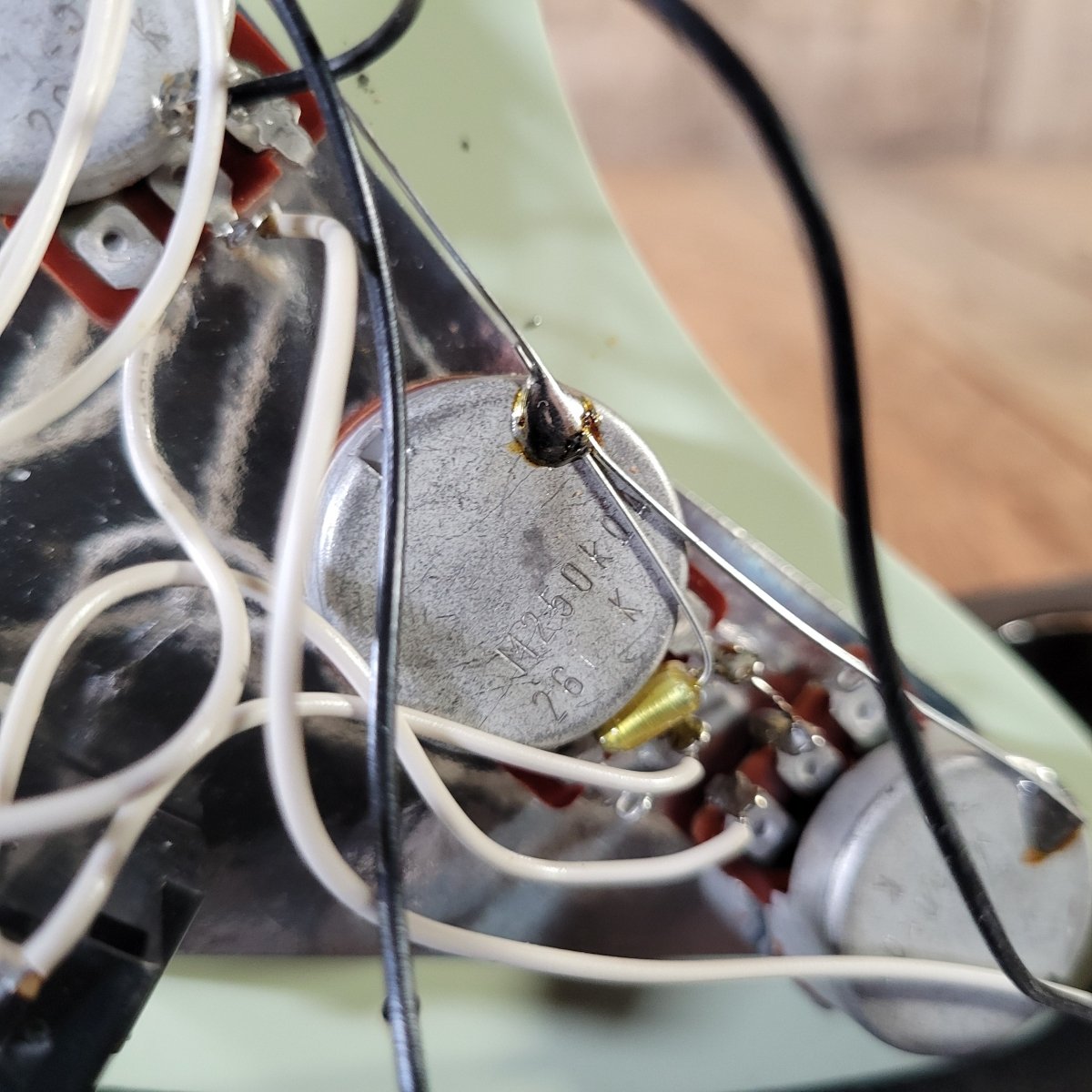 - Bridge: Vintage-style 6-saddle synchronized tremolo