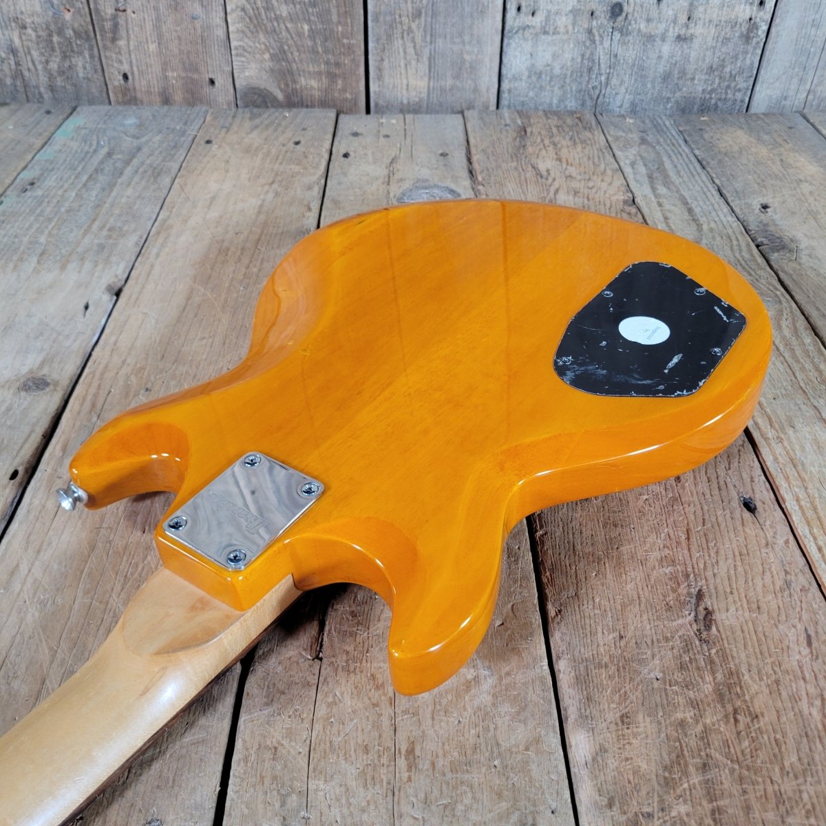 The Ibanez GAX70 (2001) in Transparent Amber offers a unique blend of affordability, style, and tone in a guitar that’s built for everyday players. Part of Ibanez’s AX Series, the GAX70 features a double cutaway mahogany body with a sleek carved top, a slim bolt-on maple neck, and a rosewood fretboard, delivering fast playability and comfortable access to higher frets.