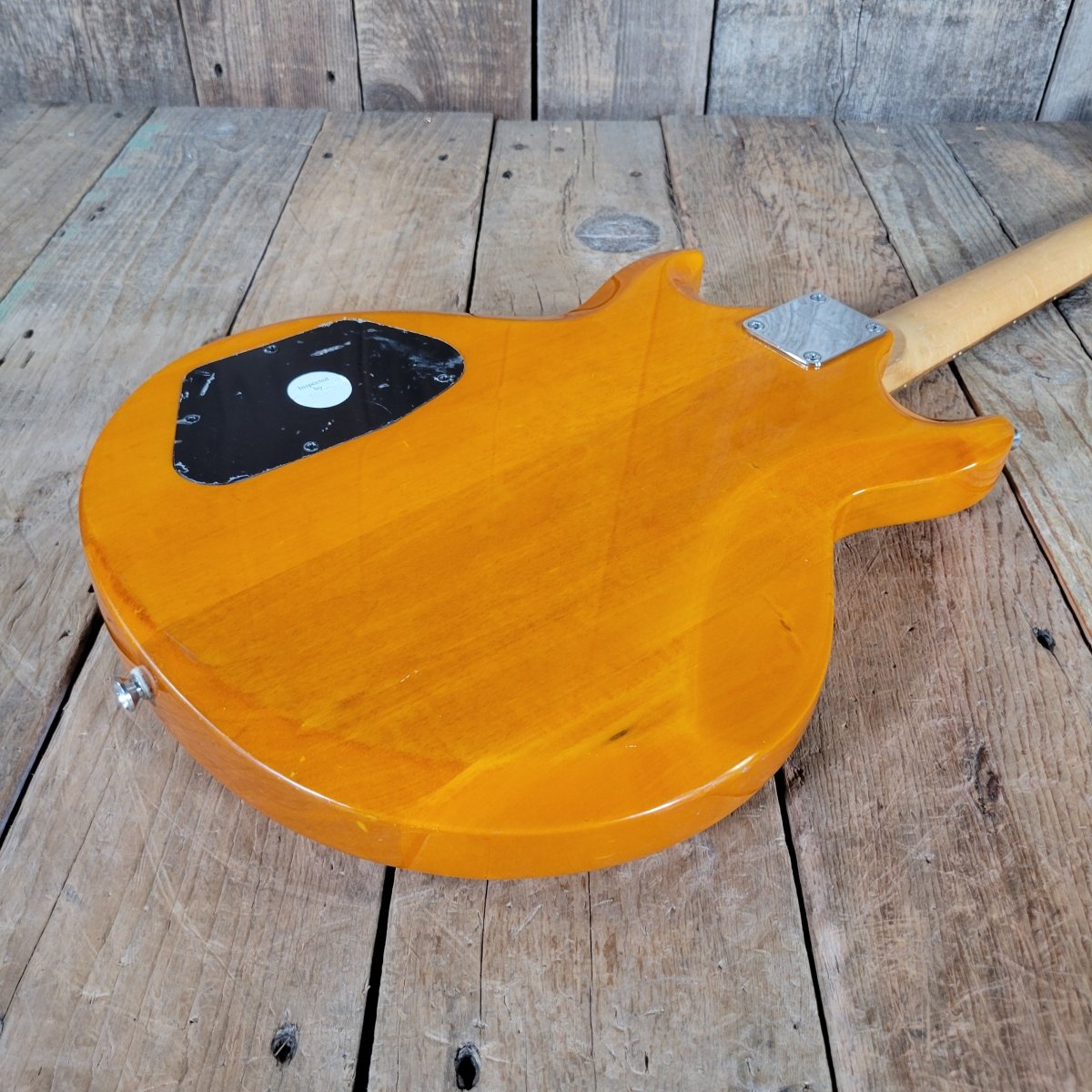 Equipped with dual humbuckers, the GAX70 is capable of handling everything from classic rock crunch to smooth blues and heavier modern tones. Its transparent amber finish highlights the natural wood grain, giving it an elevated look compared to many entry-level models. The simple control layout—2 volume knobs, 2 tone knobs, and a 3-way switch—keeps everything intuitive, while the fixed bridge ensures solid tuning stability and sustain.