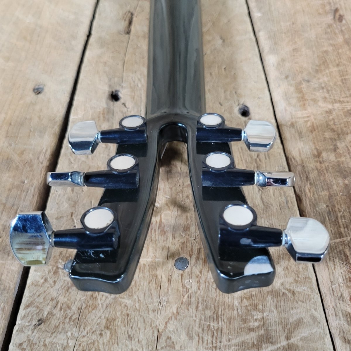 With its striking black finish and signature aluminum neck with wood inlays, the 350G offers unique sustain, stability, and unmistakable vintage tone.