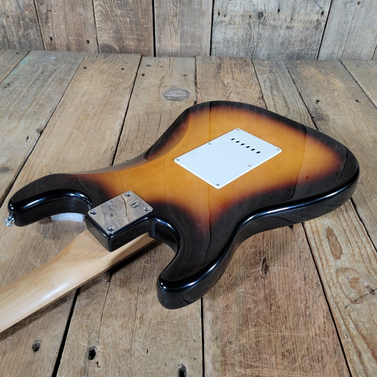 Equipped with three single-coil pickups and a 5-way selector switch, this model delivers the bright, versatile tones that made the Stratocaster an icon—from sparkling cleans to bluesy grit and classic rock bite. The vintage-style tremolo bridge adds expressive vibrato effects, making it a flexible guitar for students, hobbyists, or as a reliable backup instrument.