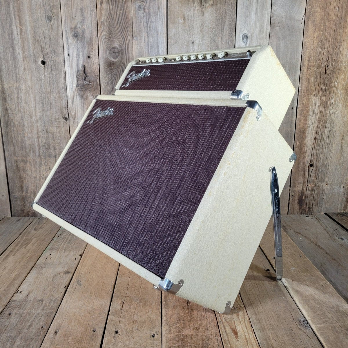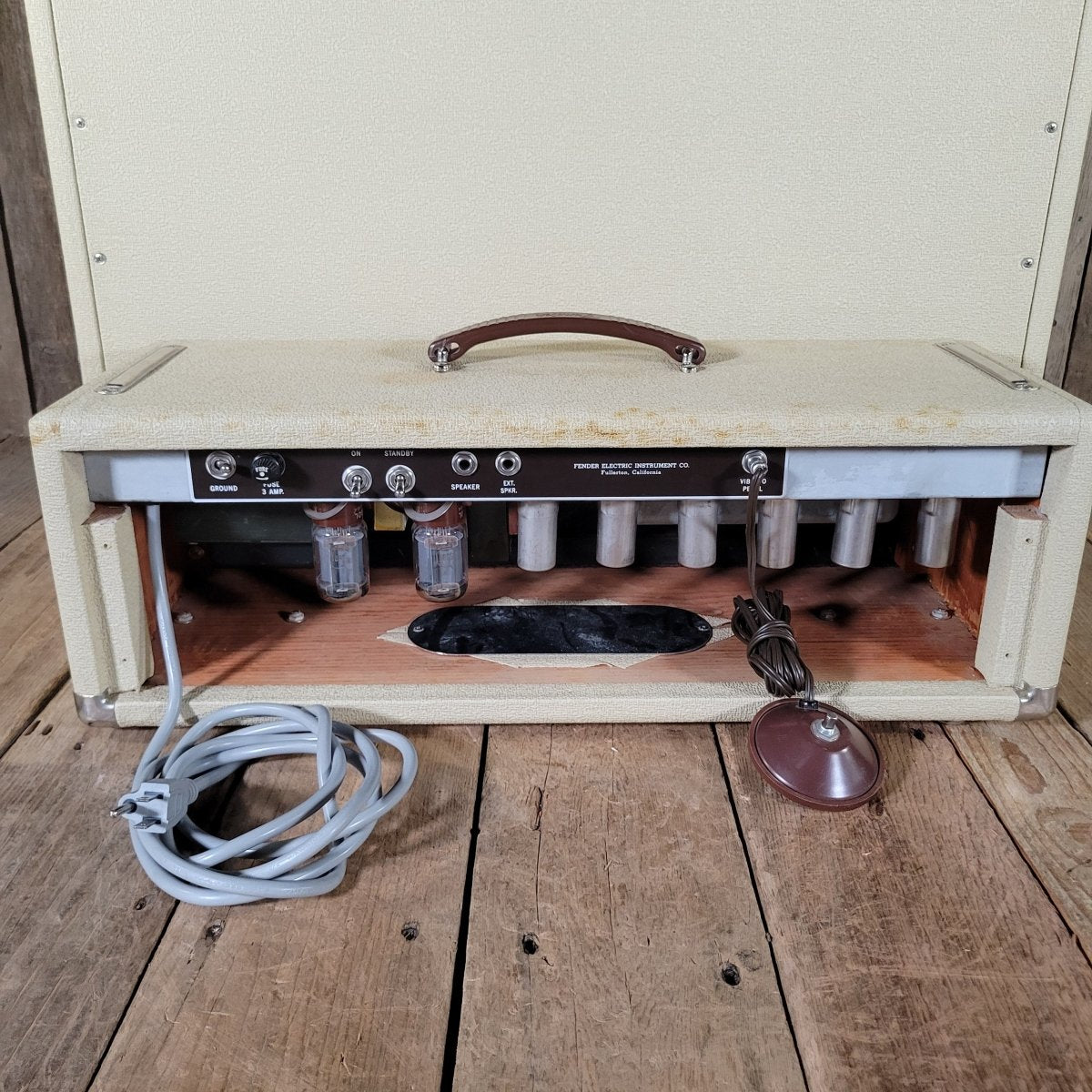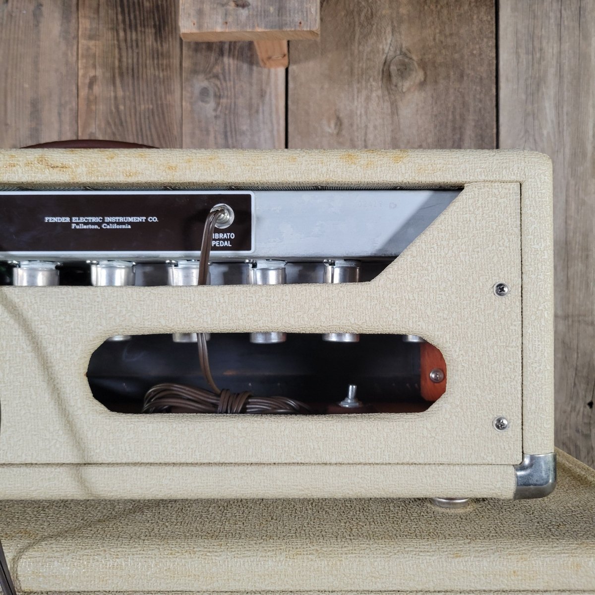 Representing the bridge between the tweed 5E7 Bandmaster and the blackface circuits that would follow, this amp delivers the perfect blend of warmth, clarity, and dynamic range that defined early ’60s Fender tone. With its oxblood grille cloth, wheat-colored rough tolex, and chrome hardware, it’s a visual and tonal masterpiece from Leo Fender’s most innovative period.