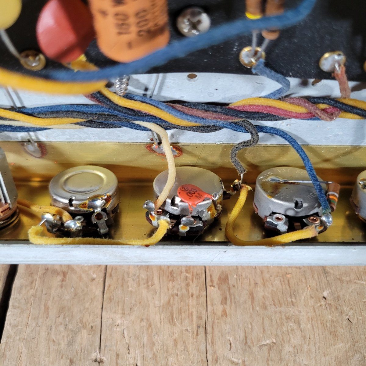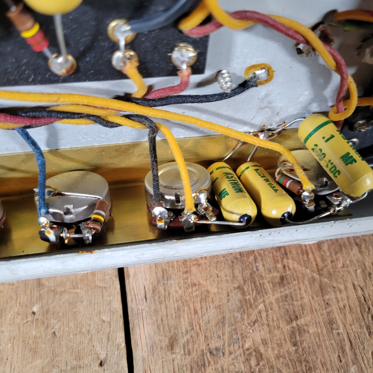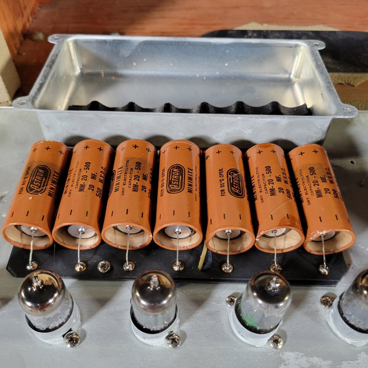 The amp has been fully serviced here in our shop, where I installed a new set of filter caps, hiding them inside the original Astron sleeves. I replaced the bypass caps as well. The original parts are included.