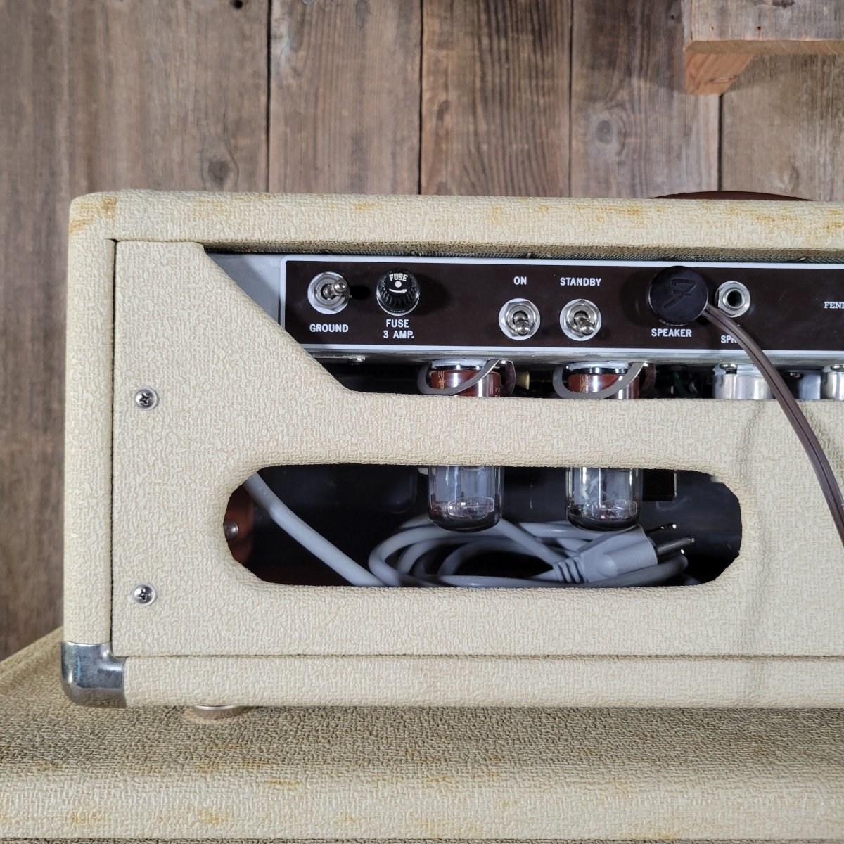 I purchased this amp along with a full set of early 60's, white blonde Fenders from a fellow dealer who has mostly retired but showed up at a recent guitar show with an incredible amp stash. I couldn't help myself - I bought all of his amps. In the group is a tone ring Tremolux, a tone ring Showman, and a tone ring Bassman - oh, and a white Twin! They all are in amazing shape and have the original covers. Check them out here on our site while the last! These amps have been hiding for decades and have never hit the market.