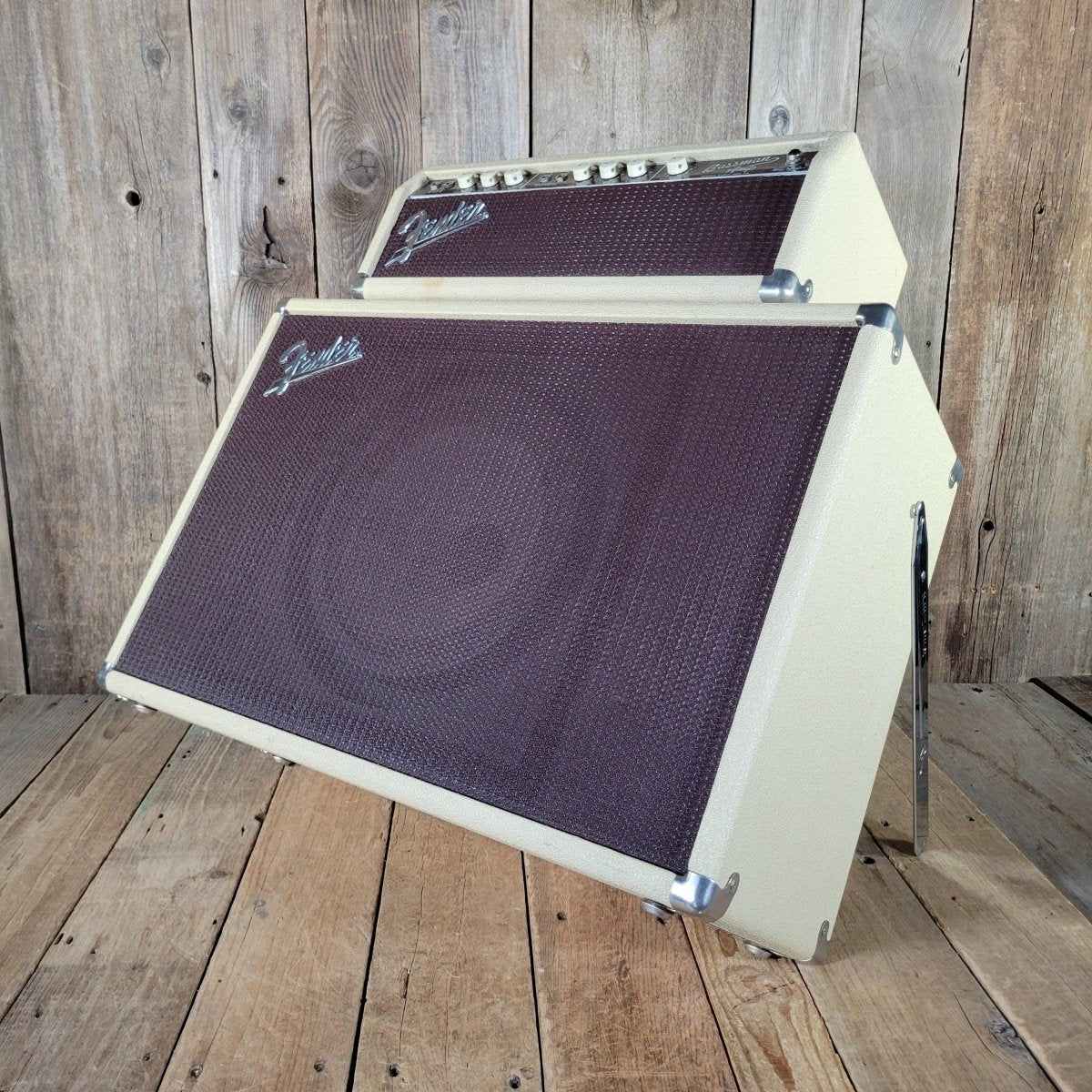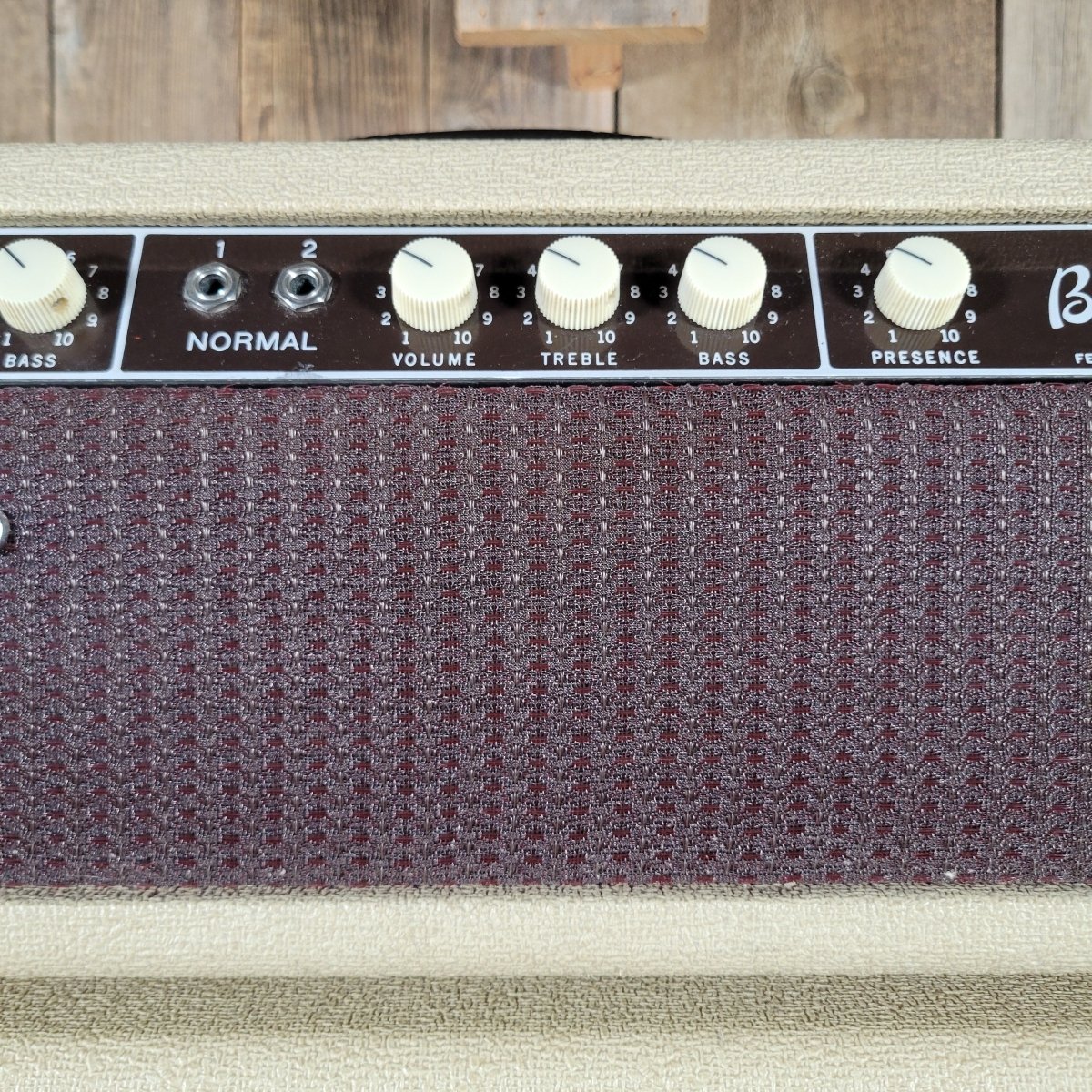 Powered by a pair of 6L6 tubes producing around 50 watts, this Bassman delivers tight, responsive low end and a sweet upper midrange perfect for guitar or bass. The matching tone ring cabinet enhances projection and low-frequency resonance, creating a massive, room-filling sound unlike any other vintage amp of its class. The blonde tolex, oxblood grille, and chrome hardware give it an unmistakably classic Fender aesthetic.