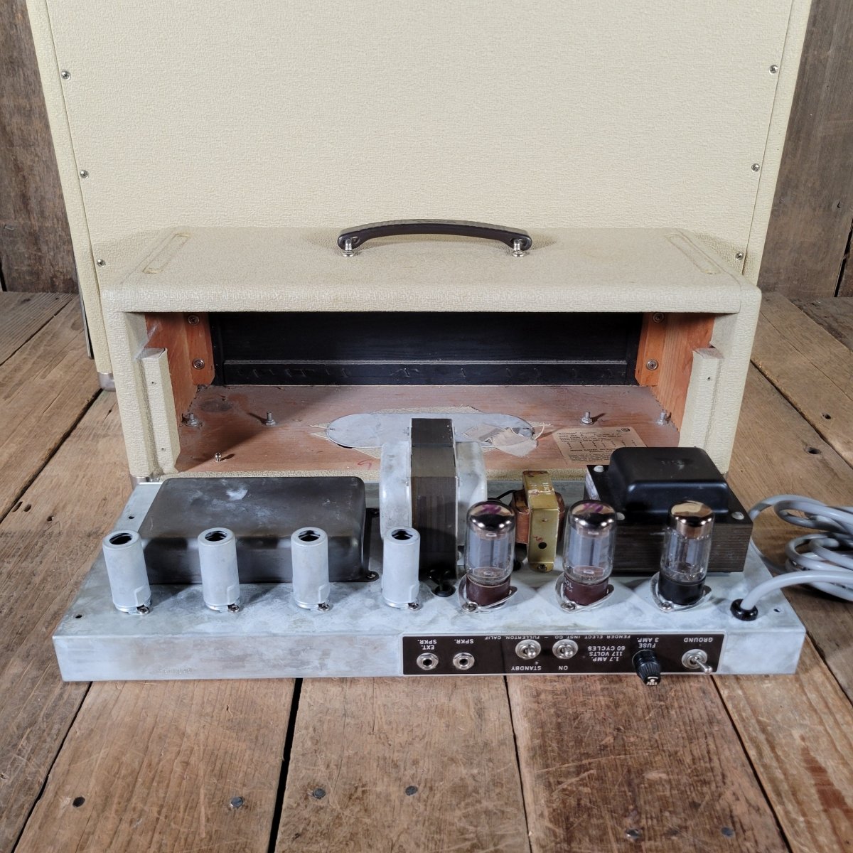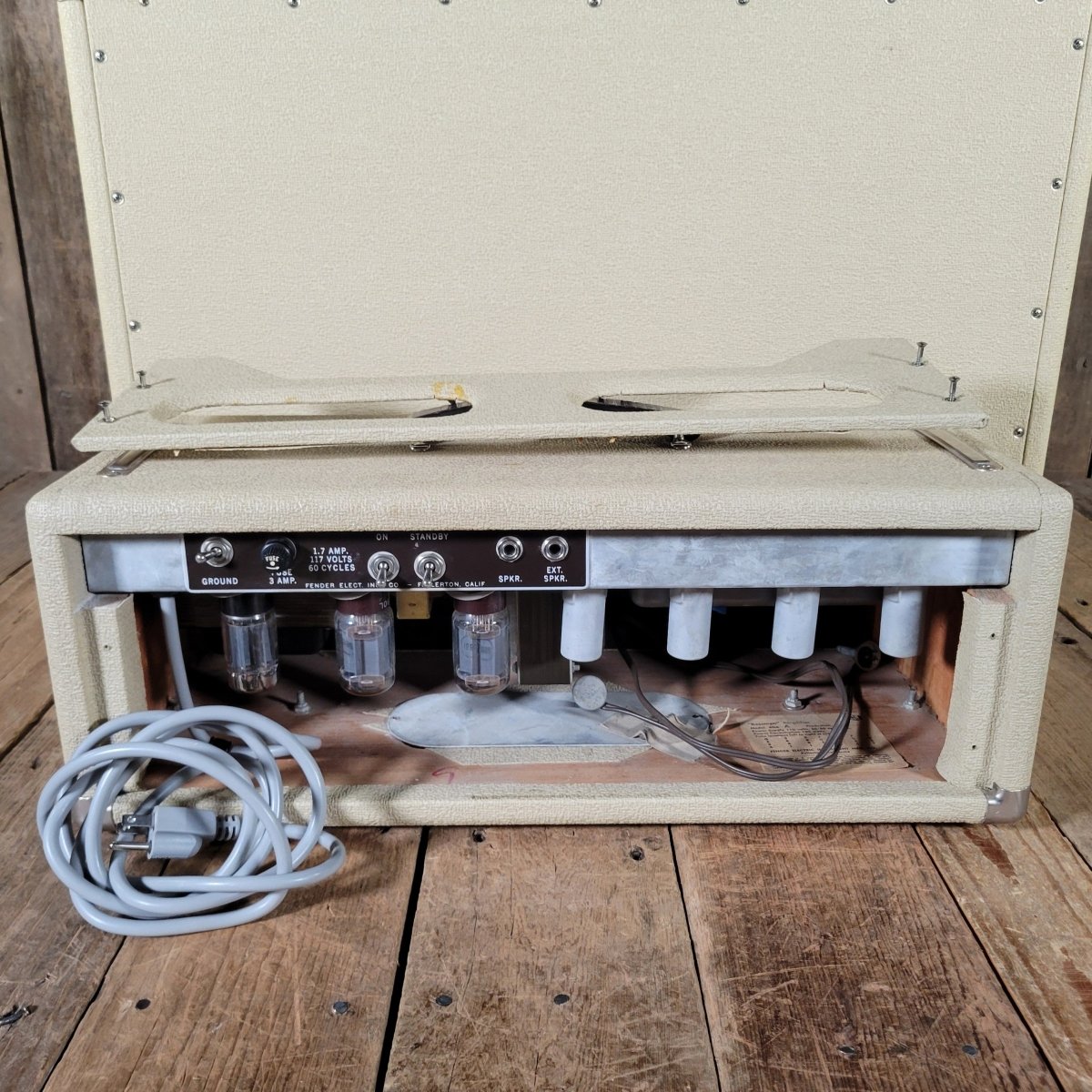 I purchased this amp along with a full set of early 60's, blonde tolex Fenders from a fellow dealer who has mostly retired and showed up at a recent guitar show with an incredible amp stash. In the group is a tone ring Tremolux, a tone ring Showman, and a tone ring Bansmaster - oh, and a white Twin! They all are in amazing shape and have the original covers. Check them out here on our site while they last! These amps have been hiding for decades and have never hit the market until now.