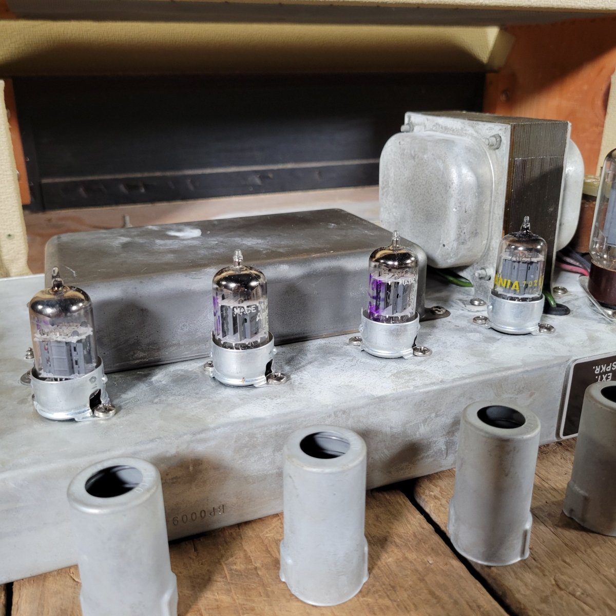 The amp came in with most necessary service already performed. I swapped the power cable for a gray, grounded one for an authentic look.