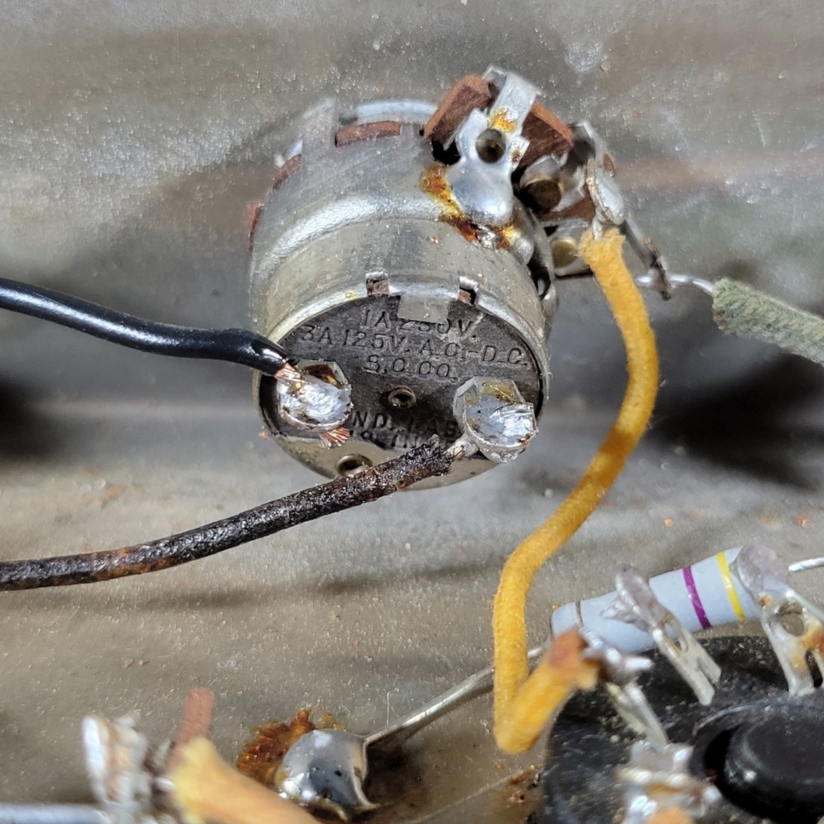 This particular amp has been professionally serviced. All the caps and resistors have been updated, which is typical for an amp of this age. The transformers are original, so is the speaker. The power cable was replaced with a grounded one. The original cable is included. We tested the tubes, cleaned the pots, and got it completely good to go.