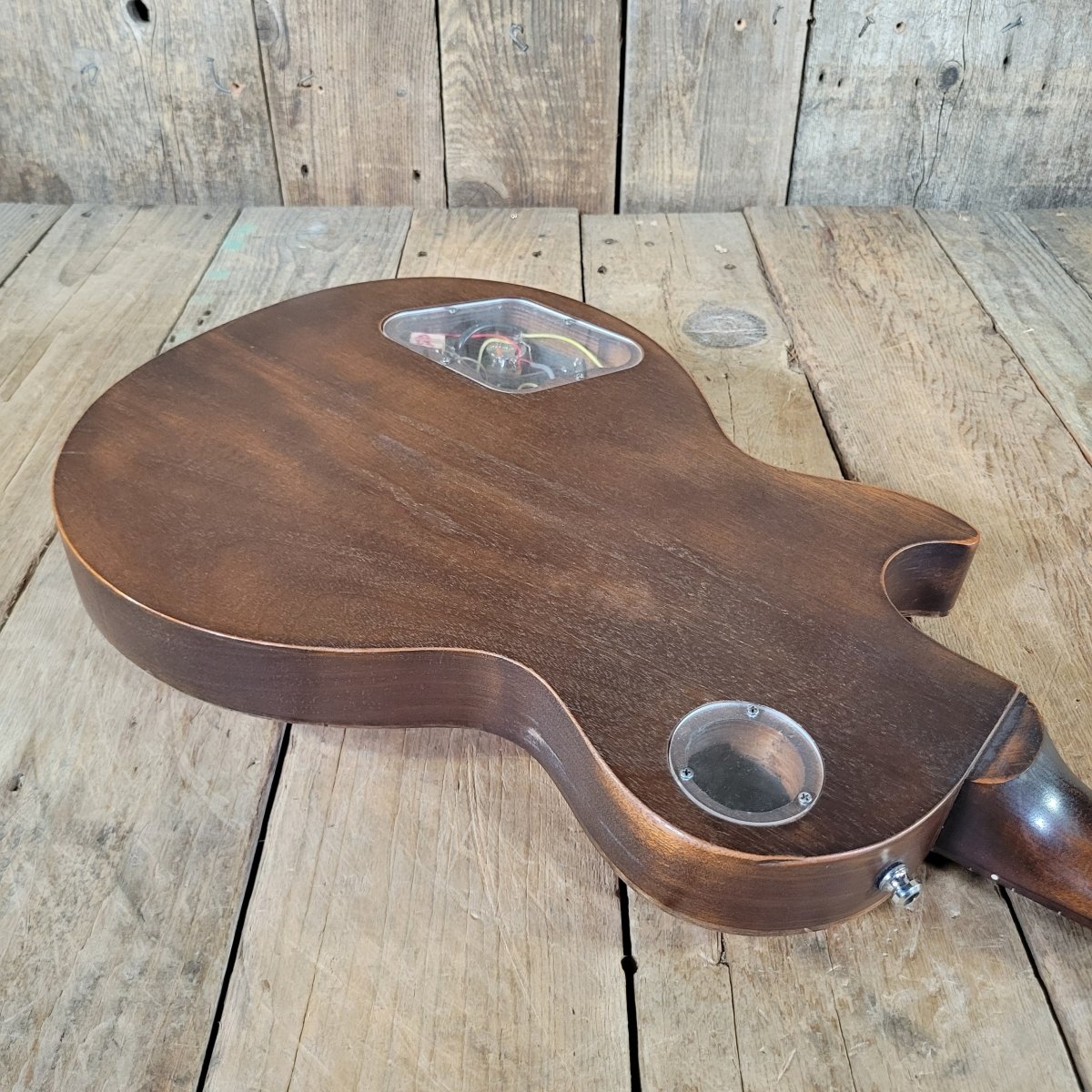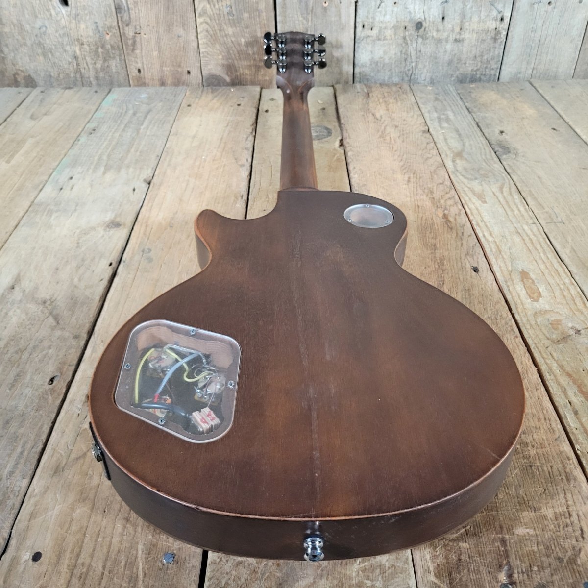 The “Barely Finished Guitar” concept strips the Les Paul down to its raw essentials—delivering incredible resonance, light weight, and a powerful mix of tonal textures. Built in the USA, this model features a carved maple top over a chambered mahogany body with a thin satin finish that allows the wood to breathe freely.
