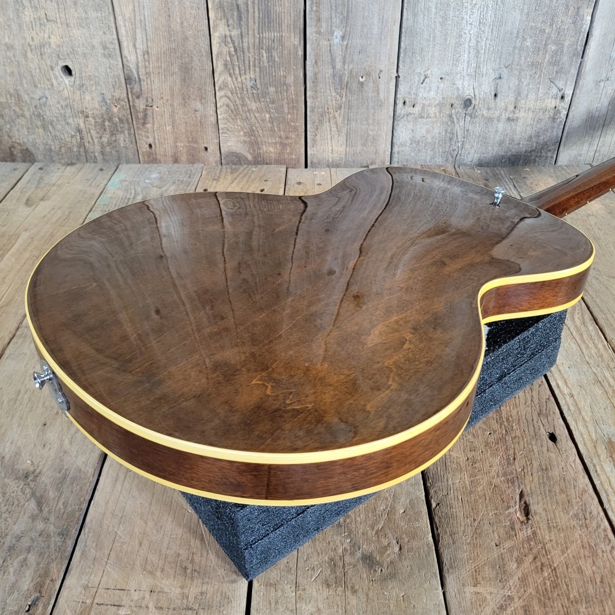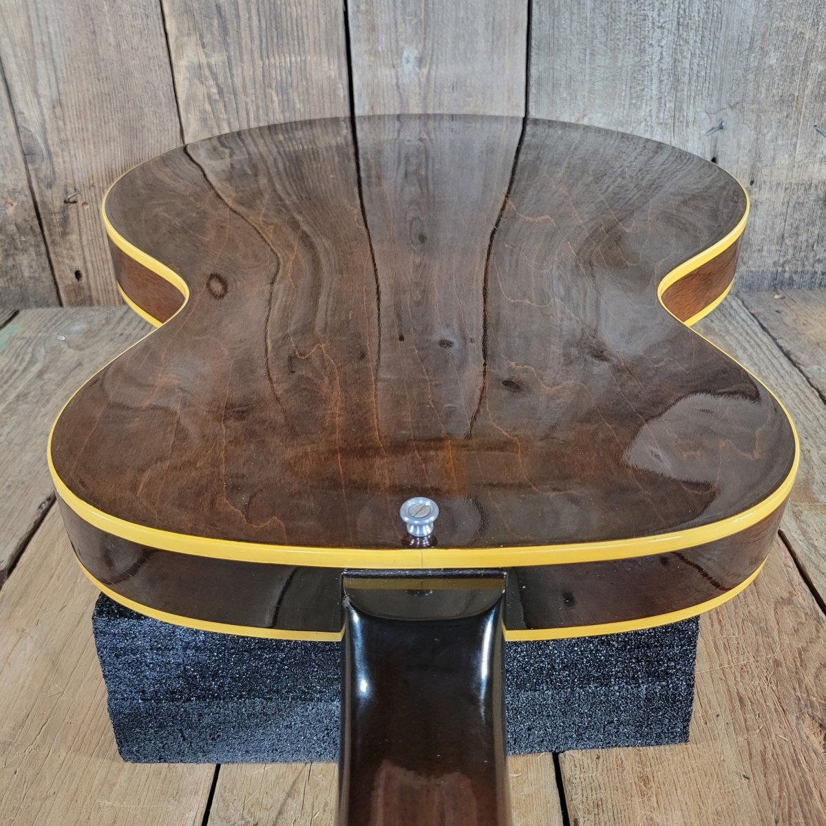 The fully hollow thinline body paired with the integrated “melody maker-style” pickup and pickguard assembly creates a warm, open, and articulate tone with a sweet top end and a mellow, woody midrange. Whether played clean for jazz, pushed for blues, or used for recording indie and lo-fi textures, the ES-120T sits beautifully in a mix. This 1965 example is in excellent condition, showing minimal wear and exceptional structural integrity—rare for a model that often shows plenty of use.