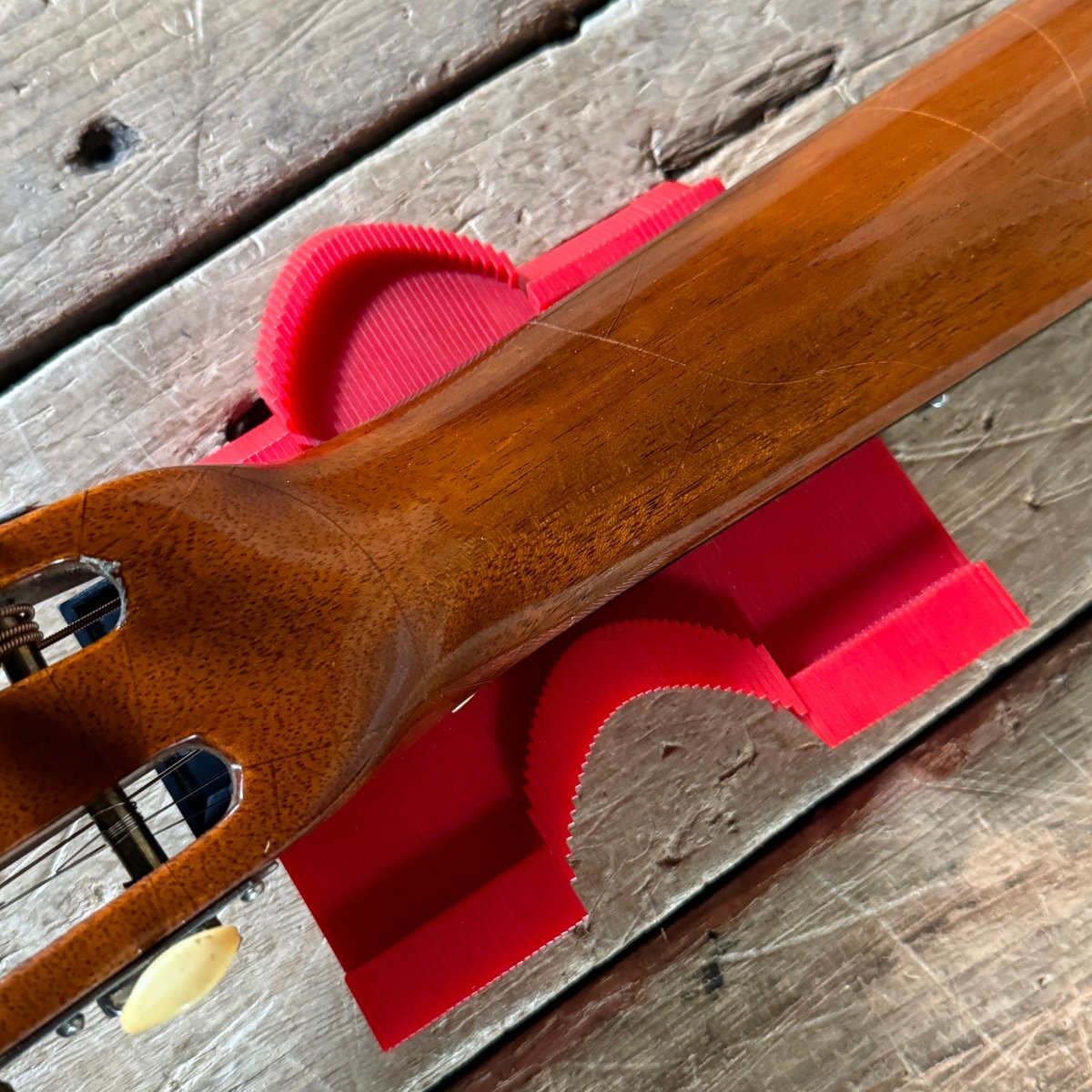 The guitar was most likely built for use wiith gut, or classical strings.  This guitar has obviously been used with steel strings.  We put some 12 gauge bronze strings on it and tuned it up for a bit.  It plays surprisingly well, but it isn't advisable to use the guitar like this, so we're going to put some nylon strings on it and have kept it detuned in the interim.