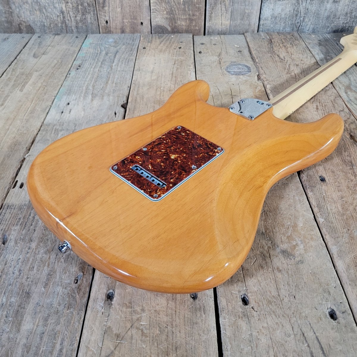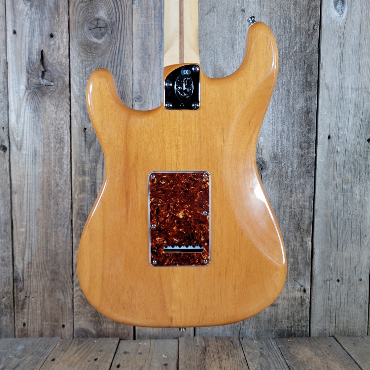 Combining vintage style with modern versatility, this U.S.-built Strat features an ash body finished in a rich translucent amber that highlights the grain, a modern “C” maple neck with a satin finish and abalone dot inlays.