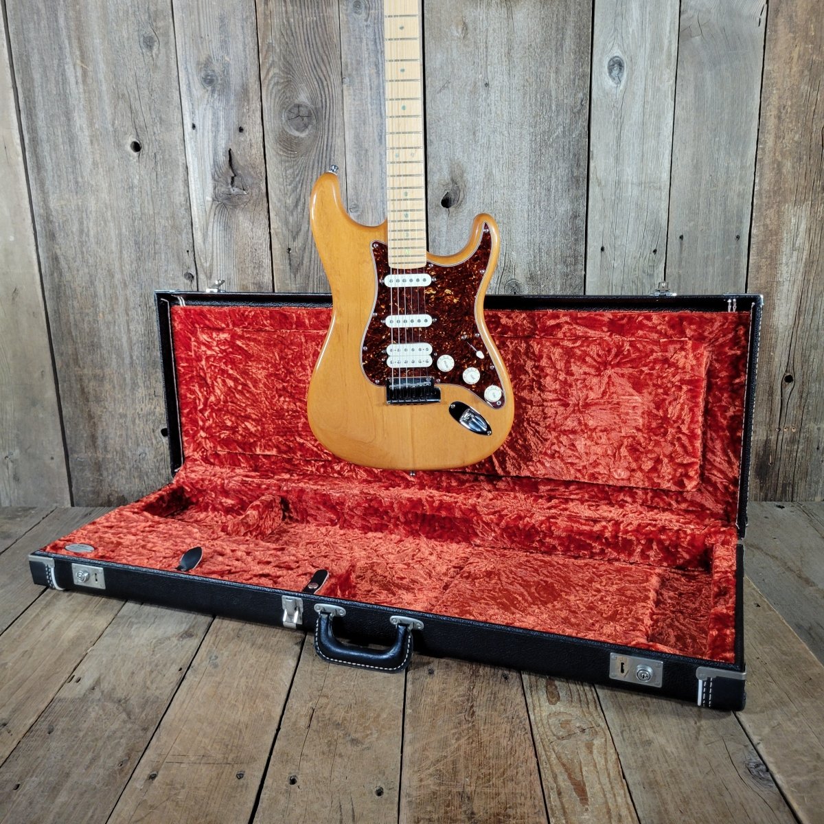 The HSS configuration pairs two Fender Vintage Noiseless single coils with a Fender DH-1 Humbucking humbucker in the bridge, offering everything from glassy cleans to thick drive tones. Additional modern features include S-1 switching for expanded tonal options and locking tuners for improved stability.