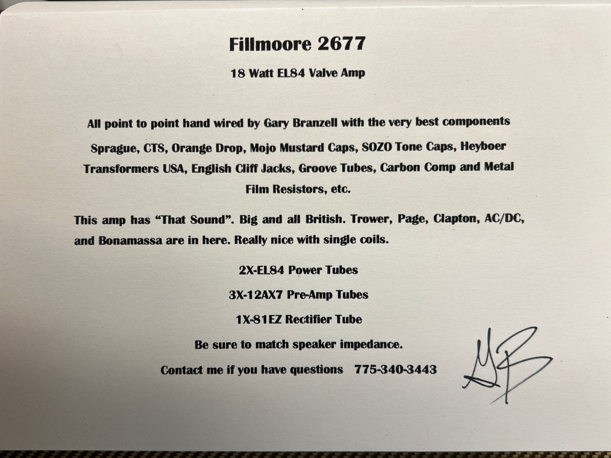 Branzell Fillmoore 2677 18w EL84 Hand Wired Guitar Amplifier