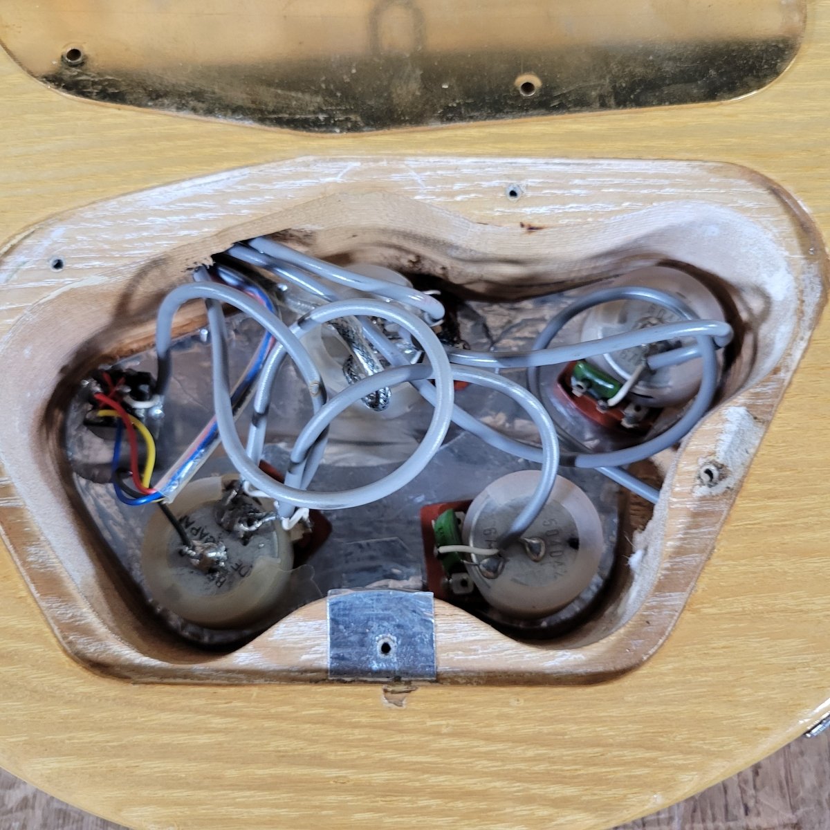 The frets appear to have been professionally replaced. They are in excellent shape. The neck is straight and the truss rod has room for future neck relief adjustment. The hardware and electronics are all original. It does appear that two solder joints were changed, but everything is original.